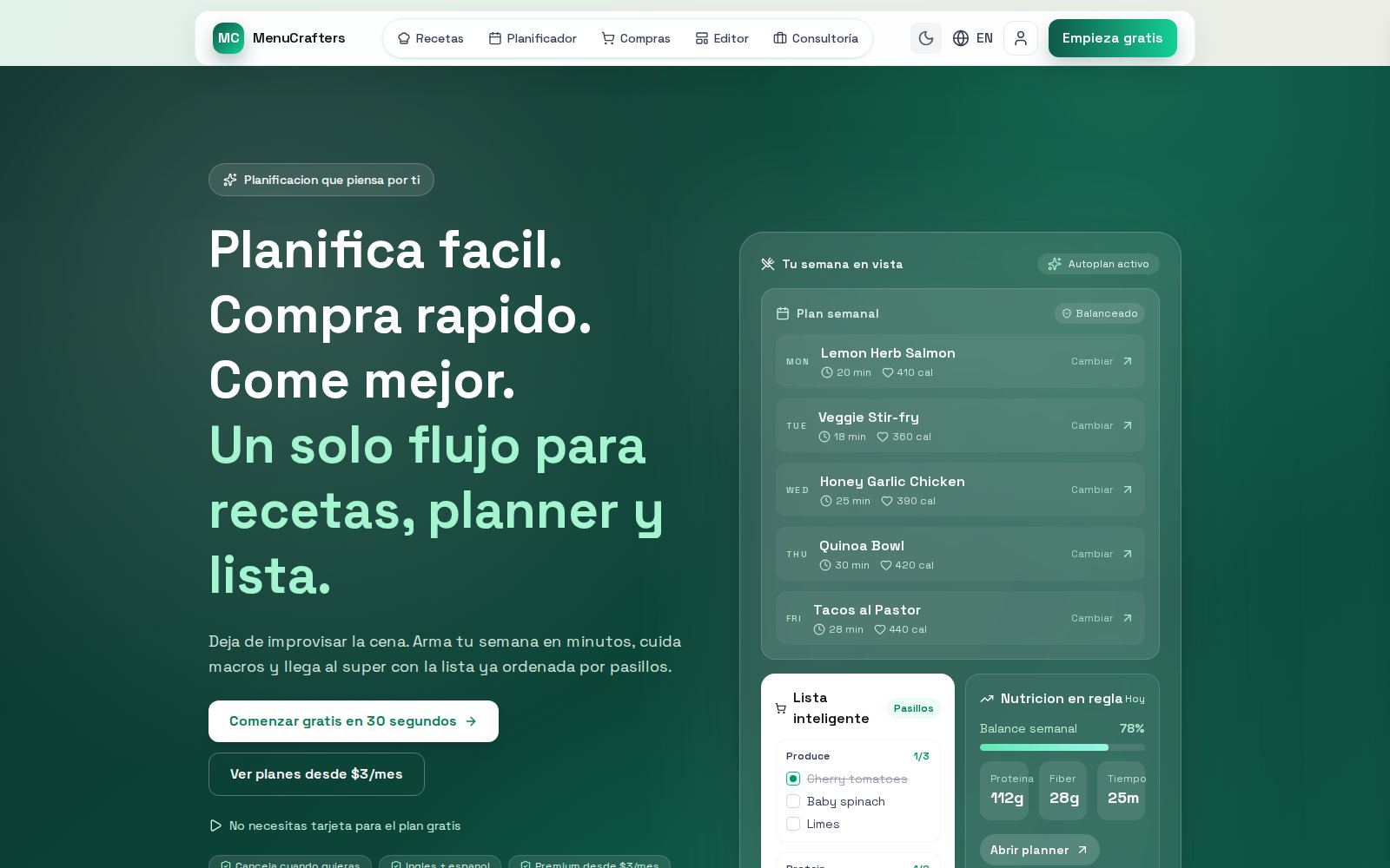 MenuCrafters entra al portfolio como una pieza viva del estudio: no como ejemplo abstracto, sino como un sistema que ya necesitó decisiones reales de producto, diseño y lanzamiento.