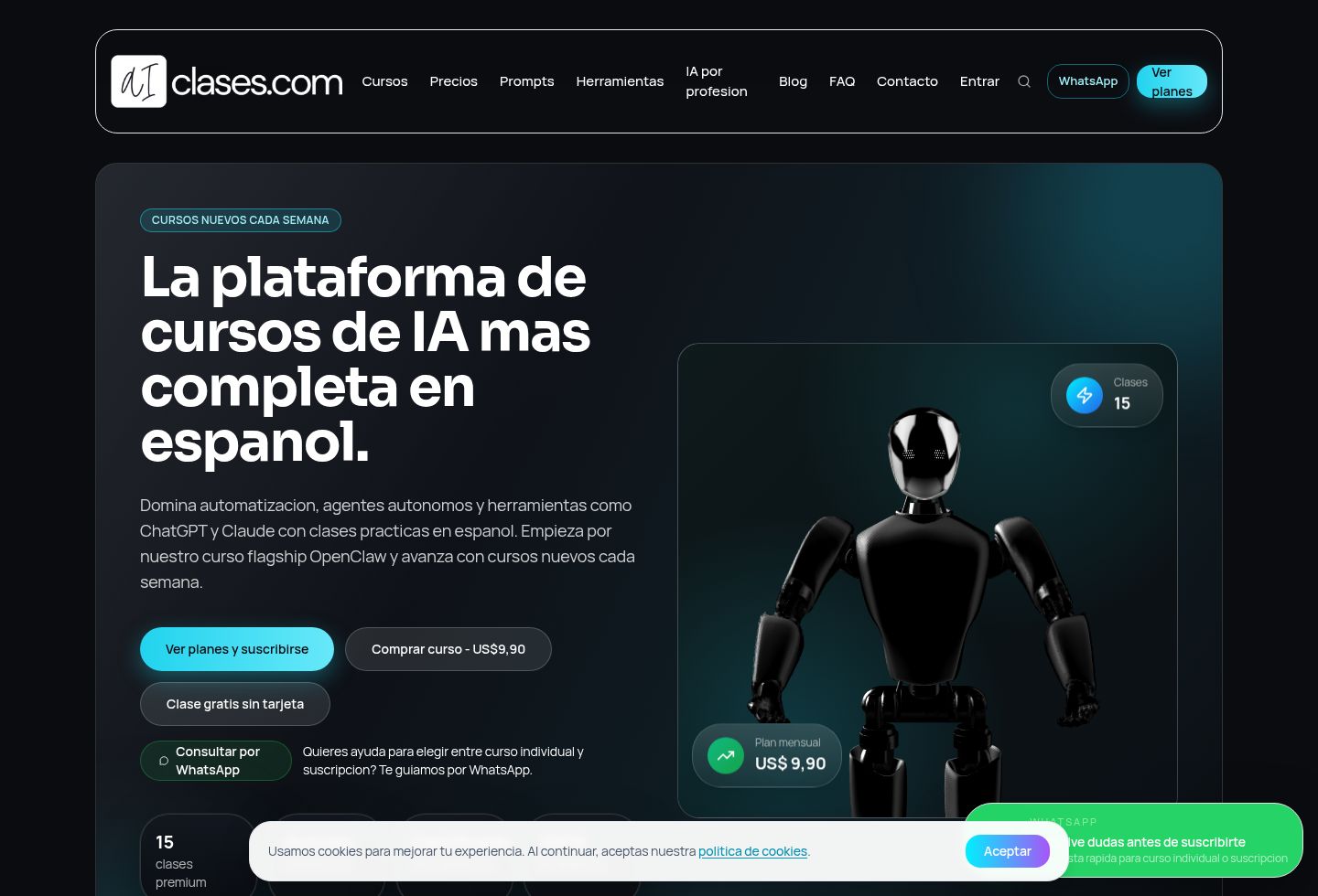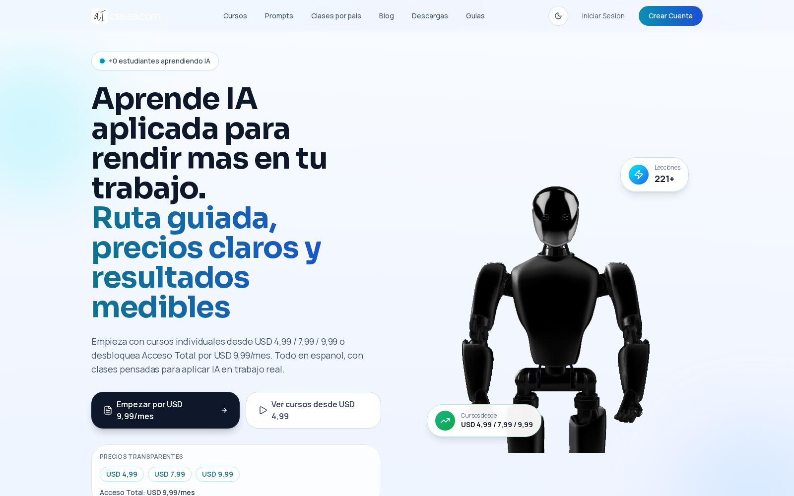 Cursos y recursos de IA en español diseñados para aprender rápido y aplicar de inmediato.
